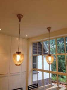 Boven de eettafel adviseren wij de 2 hangende lampen te nemen voor een beter lichtverdeling op de tafel.